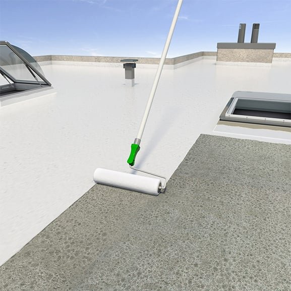 يُطبّق بالفرشاة أو الرش، ويتحول إلى طبقة مطاطية عازلة.